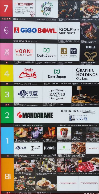 Located just south of Sapporo’s famous shopping street, Tanukikoji, NORBESA is a Sapporo landmark featuring a variety of shops and a Ferris wheel. It’s a popular and highly visited facility. For information about the shops and the Ferris wheel, please refer to the following website [Note 1].