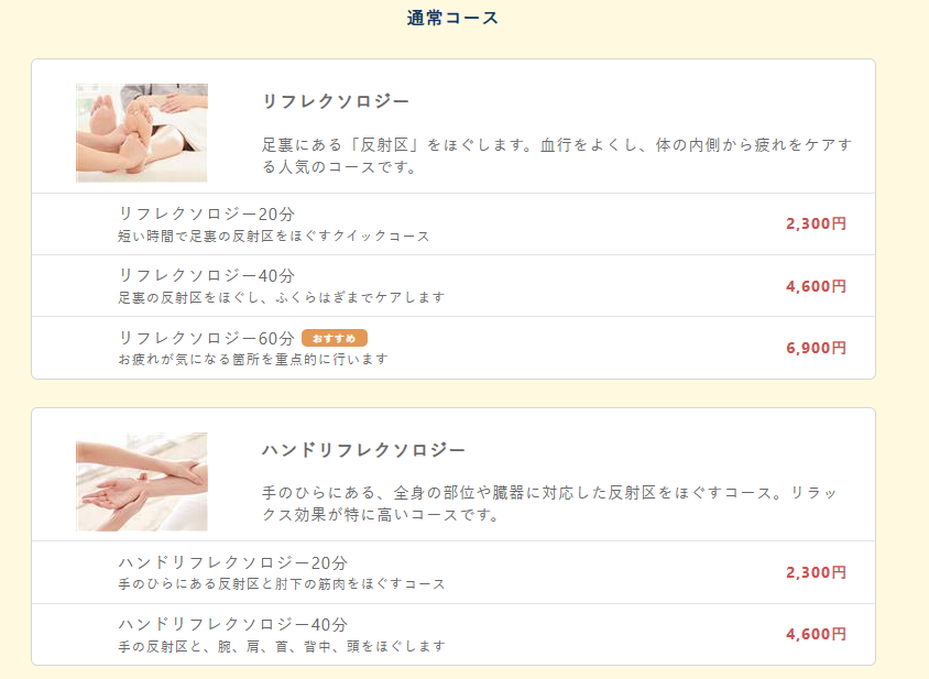 First, I’ll introduce HABA, a shop selling additive-free cosmetics. This shop offers high-quality squalane and health foods. [Note 3] Tree of Life is a herb and aromatherapy shop that offers “nature, health, and fun” through herbs and aromas. [Note 4] Raffine offers massages for hands, feet, and other body parts to relieve stiffness. [Note 5] Like Raffine, a shop called Temomin also offers massages to relieve body stiffness [Note 6].