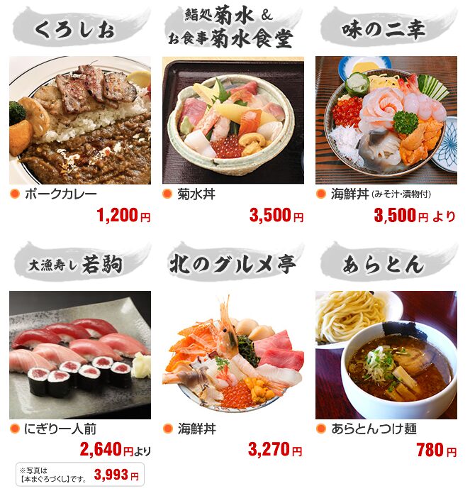 In addition, the restaurant at the Sapporo Central Wholesale Market offers dishes like unaju (eel rice bowl), pork curry, ramen, and gomoku yakisoba (fried noodles with mixed vegetables and vegetables), as well as seafood bowls and sushi for seafood lovers [Note 3]. For those looking to sample fresh seafood, we recommend the restaurant at the Sapporo Central Wholesale Market.