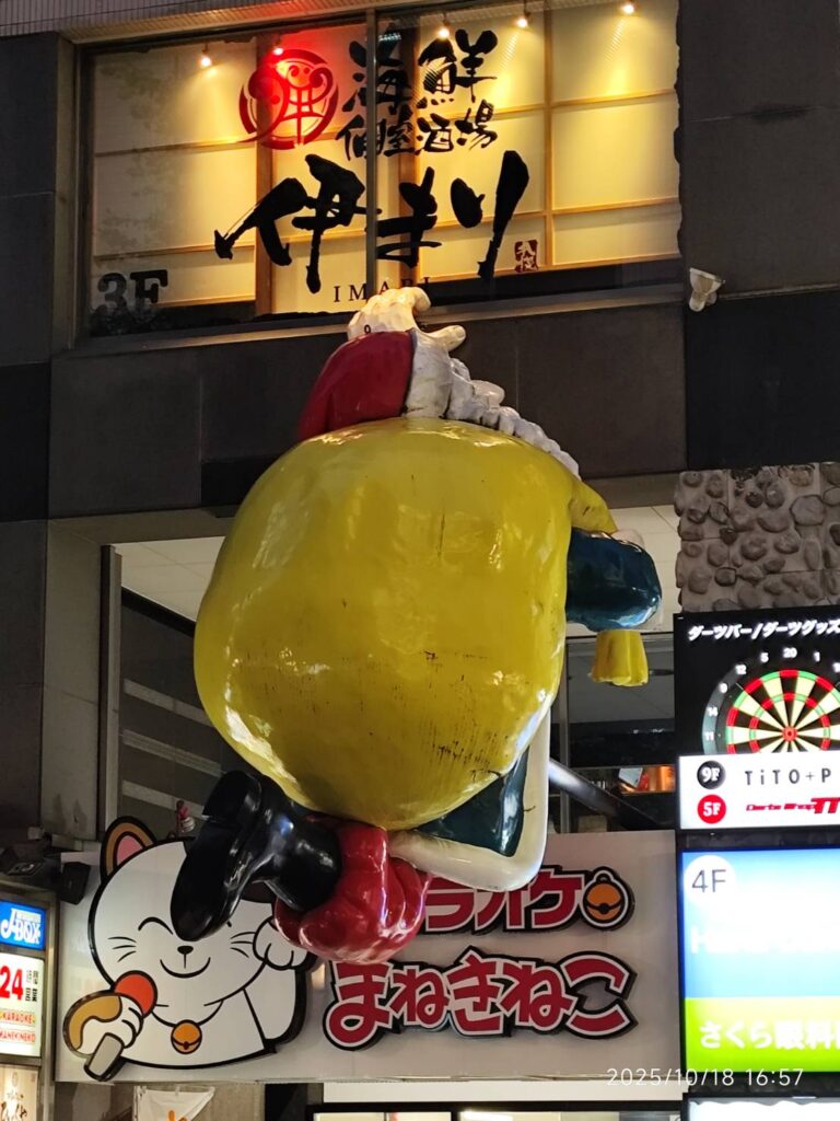 Even for those who don’t love singing, there’s a unique karaoke bar that’s enjoyable just for its exterior. Located on the same street as Mega Don Quijote, Maneki Neko is decorated with Santa Claus and elves on the exterior, attracting the attention of passersby. You can also enjoy a meal there, serving dishes from Kagetsu Arashi, Ringer Hut, and Dindako. [Note 1]